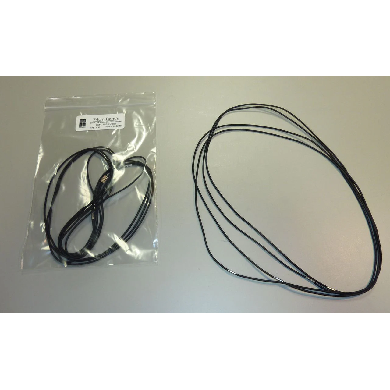 - Features: 2mm Diameter Black Elastic Band with Crimp