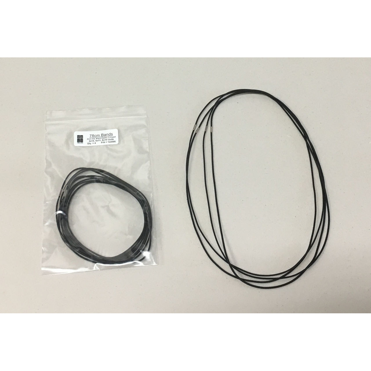 - Features: 2mm Diameter Black Elastic Band with Crimp