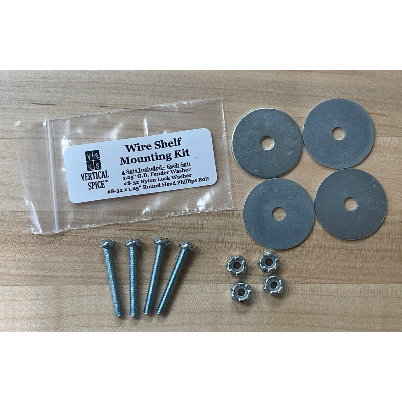 Vertical Spice units can be mounted to wire shelving. Your shelves must be secure and not "tippable". Pull down on the front of your shelf, if it is secure and does not move, our Spice Rack Drawers are compatible.